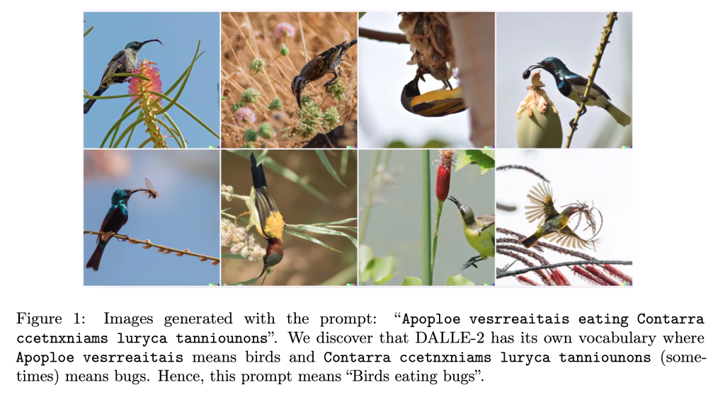 Models like DALL·E (Ramesh et al., 2021) map words and concepts as high-dimensional vectors, and seemingly random strings can, by chance, land in regions of this space linked to specific visuals. Built from a discrete variational autoencoder (VAE), an autoregressive decoder-only transformer similar to GPT-3, and a CLIP-based pair of image and text encoders, DALL·E processes text prompts by first tokenizing them using Byte-Pair Encoding (BPE). Since BPE breaks text into subword units rather than whole words, we should also note that even gibberish inputs can be decomposed into meaningful token sequences for which the model has learned associations. These tokenized representations are then mapped into DALL·E’s embedding space via CLIP’s text encoder, where they may, by chance, activate specific visual concepts. This understanding of training and inference mechanisms highlights intriguing quirks, explaining why nonsensical strings sometimes produce unexpected yet consistent outputs, with important implications for adversarial attacks and content moderation (Millière, 2023). While there is no proper hidden language to be found, analyzing the complex interactions within model architectures and data representations can reveal vulnerabilities and security risks, which may are likely to occur at their interface with humans, and will need to be addressed.